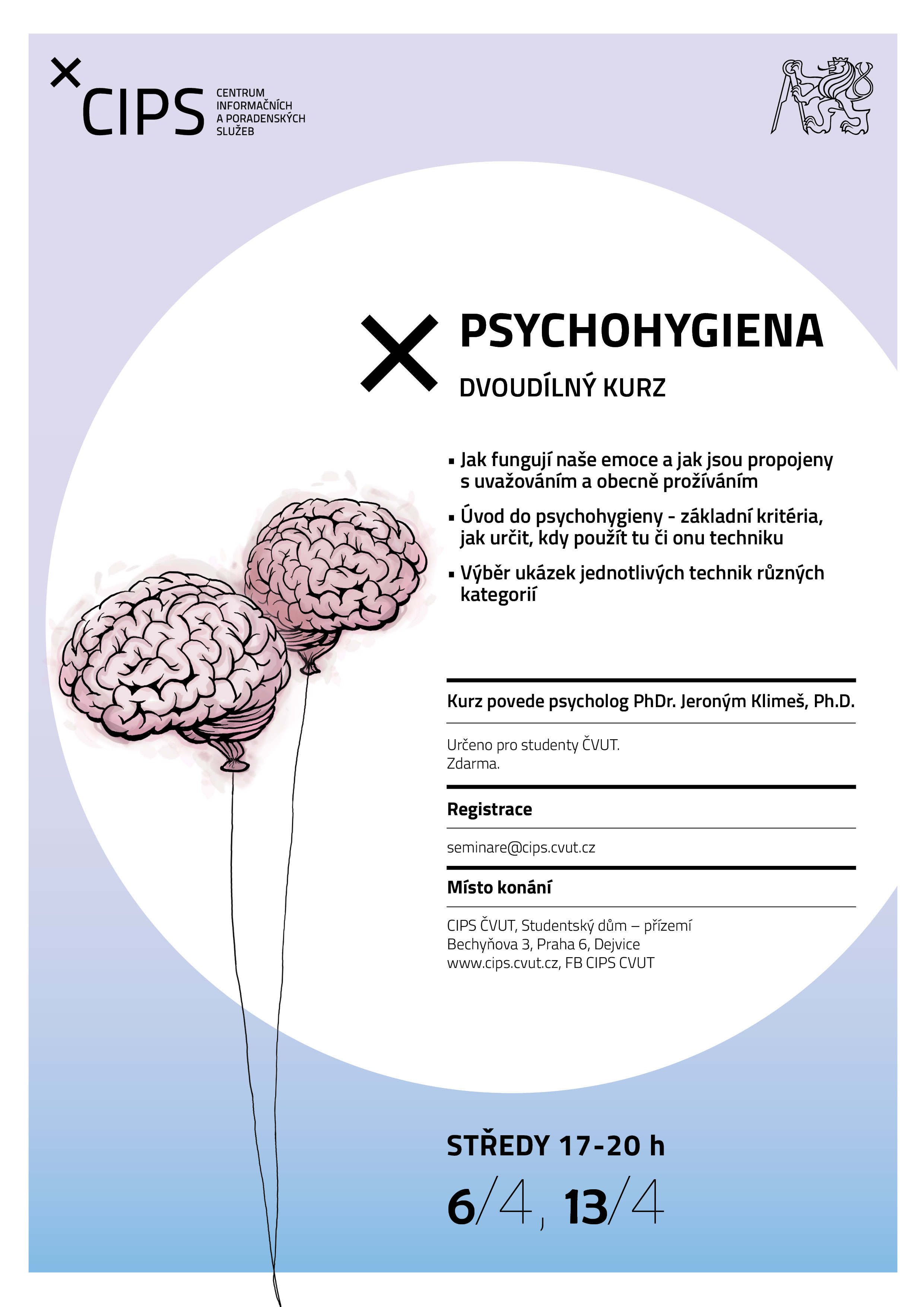 Kurz je zdarma, určen pouze pro studenty ČVUT. Registrace je buď osobně v CIPS či přes e-mail: seminare@cips.cvut.cz