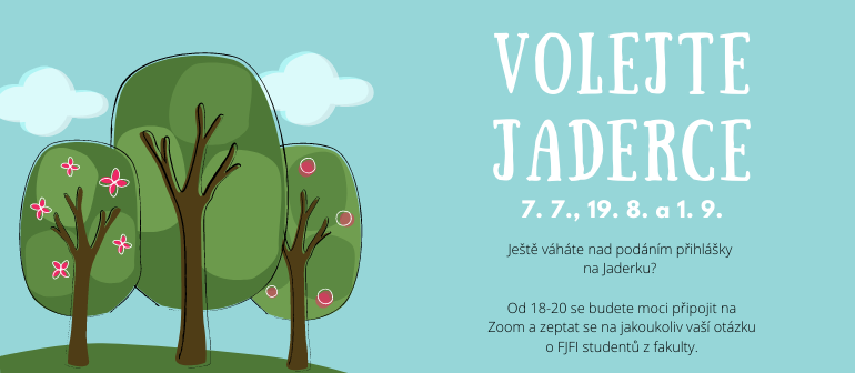 Zvažujete studium na Fakultě jaderné a fyzikálně inženýrské ČVUT v Praze? Pořád ještě máte čas, protože přihlášky je možné podávat až do 6. září 2021. Pokud máte nějaké otázky ať už ohledně studia, nebo života na Jaderce, budete mít hned tři příležitosti si online popovídat se studenty.