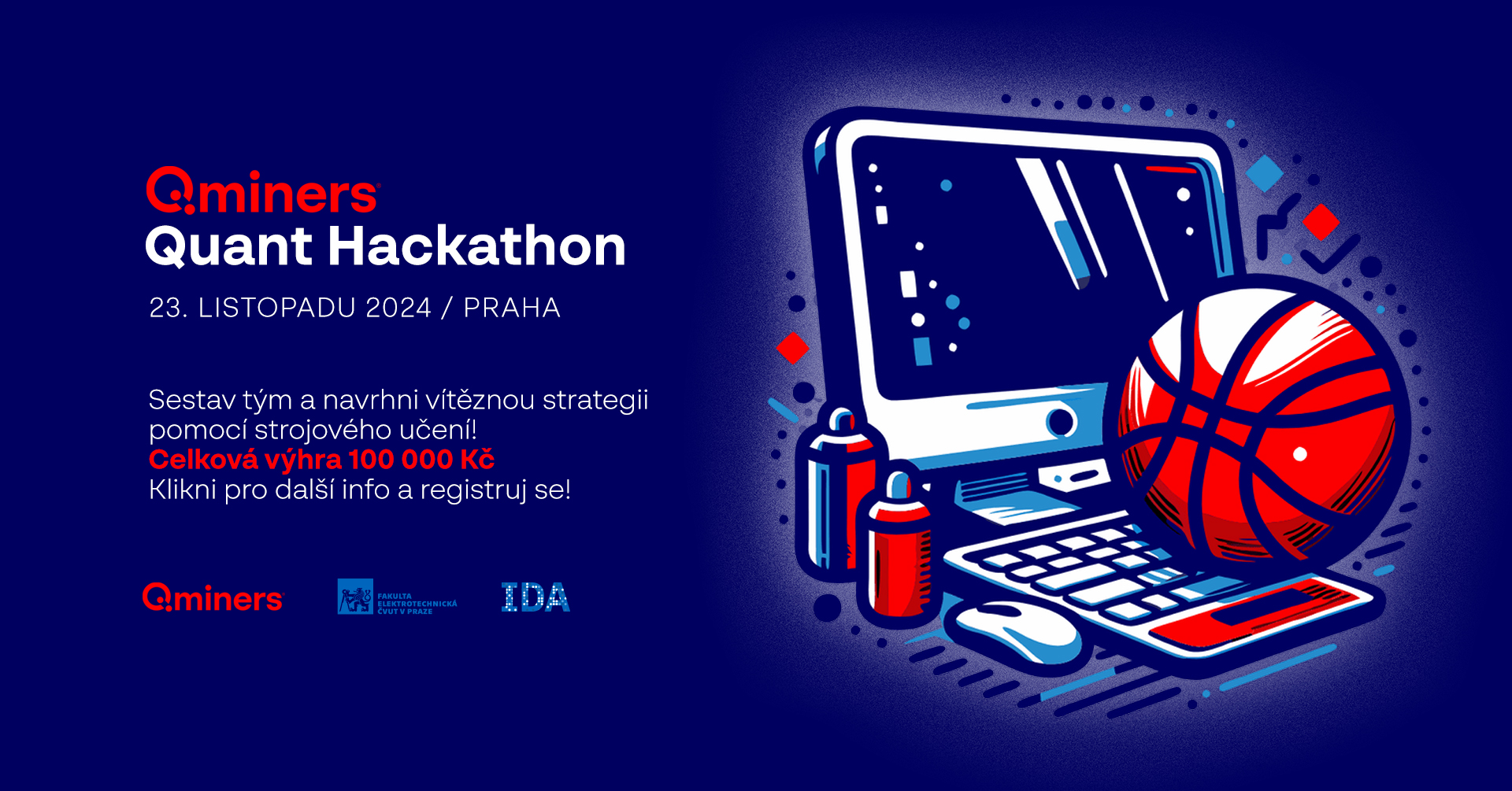 Zveme tě na Qminers Quant Hackathon 2024, soutěž organizovanou firmou Qminers a FEL ČVUT v Praze. Hackathon je určen všem studentům a studentkám, kteří se nebojí složitých programovacích výzev. Tvým cílem bude pomocí strojového učení porazit virtuální sportovního bookmakera. Výherci si rozdělí 100 000 Kč!